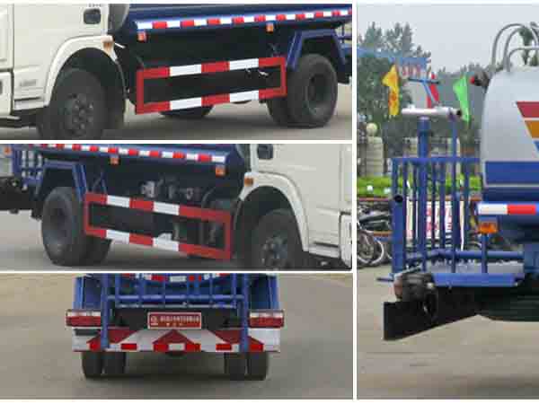 整車說明: 罐體有效容積:4.72立方米;罐體外形尺寸(長/長軸/短軸)(mm):4200/1600/1000。隨底盤選裝駕駛室。防護材料:Q235A碳鋼,連接方式:左右側(cè)面及后下部防護均采用焊接連接,后部防護斷面尺寸(mm):200×50×5,后部防護離地高度(mm):500。