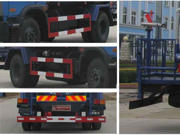 整車說明: 罐體有效容積:7.14立方米;罐體外形尺寸(長/長軸/短軸)(mm):4200/2000/1250,后懸(mm):2000,2250與軸距(mm):4200,3950一一對應(yīng)。隨底盤選裝駕駛室(前部燈具及保險杠變化)。防護(hù)材料:Q235A碳鋼,連接方式:左右側(cè)面及后下部防護(hù)均采用焊接連接,后部防護(hù)斷面尺寸(mm):150×50×5,后部防護(hù)離地高度(mm):490。ABS生產(chǎn)廠家:東風(fēng)電子科技股份有限公司制動系統(tǒng)公司;型號:3631010-C2000