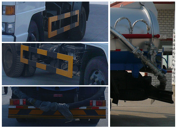 整車說明: 運輸品名:液態(tài)污物,密度:800千克/立方米;罐體有效容積3.54立方米,罐體外形尺寸 (直段長×最大直徑) (mm):3000×1250。側(cè)防后防采用Q235材質(zhì)焊接在大梁上.后防護外型尺寸(mm):50×240.后防離地高為450mm.