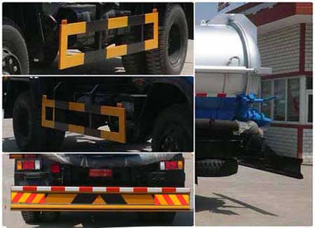 整車說明: 運輸品名:污水,密度:800千克/立方米;罐體有效容積8.5立方米,罐體外形尺寸 (直段長×直徑) (mm):4500×1600。隨底盤選裝駕駛室。側(cè)防后防采用Q235材質(zhì)焊接在大梁上.后防護斷面尺寸(mm):50×240.后防離地高為470mm.ABS生產(chǎn)廠家:東風(fēng)電子科技股份有限公司制動系統(tǒng)公司;型號:3631010-C2000