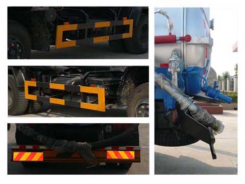整車說明: 運(yùn)輸品名:糞水,密度:900千克/立方米;罐體有效容積9.9立方米,罐體外形尺寸:罐體長4500mm,長軸1800mm,短軸1800mm.側(cè)防后防采用Q235材質(zhì)焊接在大梁上.后防護(hù)截面尺寸(mm):50×270.后防離地高為530mm.隨底盤選裝前部燈具及保險杠,消聲器可前置。ABS生產(chǎn)廠家為東風(fēng)電子科技股份有限公司制動系統(tǒng)公司;型號:3631010-C2000。