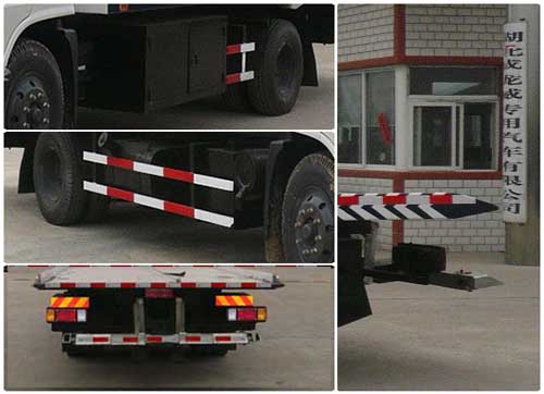 整車說明: 軸距4700mm時(shí),后懸3020,整備質(zhì)量7300kg,托舉質(zhì)量:5000kg.軸距5000mm時(shí),后懸2720mm,整備質(zhì)量7500kg時(shí),托舉質(zhì)量:4800kg.側(cè)防采用Q235材質(zhì)焊接在大梁上,后防護(hù)由專用作業(yè)裝置代替.車輛后部離地高520mm.ABS廠家及型號為:威伯科汽車控制系統(tǒng)(中國)有限公司,4460046440;東風(fēng)電子科技股份有限公司制動(dòng)系統(tǒng)公司,3631010-C2000