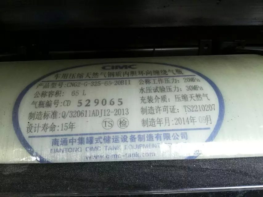 底盤配置:唐駿單排駕駛室,國四88馬力汽油發(fā)動機,5檔變速箱,3噸后橋,140大梁,185真空胎,底盤兩側帶車用壓縮天然氣鋼質內膽,單個容積為65L. | |||