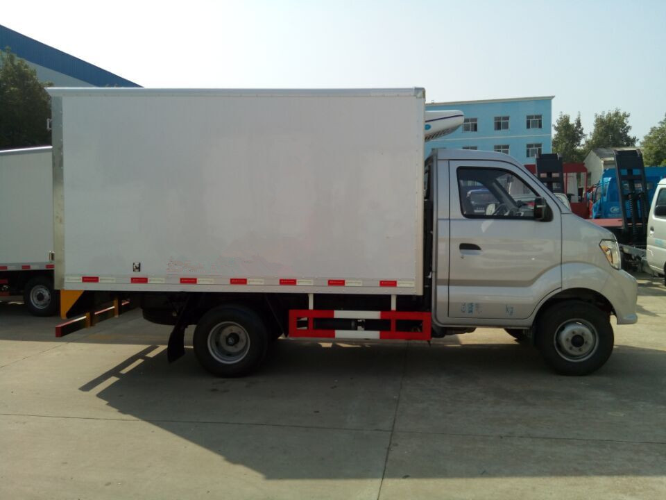 整車說明:選裝同色面罩;選裝貨廂;整車長5060mm與貨箱長2800mm,軸距2850mm對應(yīng);整車長5360mm與貨箱長3100mm,軸距3050mm對應(yīng);頂部封閉,不可開啟;該車型的用途是貨品的冷藏運輸, 裝 SC-180車用制冷機組;