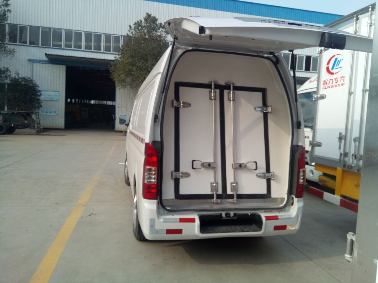 ★程力專用汽車股份有限公司,引進目前國際最先進冷藏車生產技術并斥巨資購置先進的發(fā)泡成型設備和18米大型復合板材生產線,制造出新一代冷藏保溫車。生產的冷藏車廂體內外壁板選用優(yōu)質的玻璃鋼、不銹鋼或彩鋼板;中間保溫材料選用200px厚進口聚氨酯擠塑板;廂體周邊鋁合金包邊;底板采用整體現澆玻璃鋼。采用新技術、新工藝制造的冷藏車具有保溫性能好、外型美觀、整體質量輕、強度高、無滲漏等特點。廂板耐沖擊性好,對大氣、水和酸、堿、鹽等介質具有良好的耐腐蝕性和抗老化性。經過優(yōu)化設計,大大降低廂底板離地面高度,增大了車廂的有效容積,車輛行駛的安全性更高。廂底板選裝通風槽,便于冷氣流通全車,并保持廂內溫度均衡。冷藏機組有知名的國產與進口機組選擇,溫度可達深冷要求,機組具有結構簡單、操作方便運行可靠、能耗低制冷量大,噪聲小安裝維護方便等特點。
