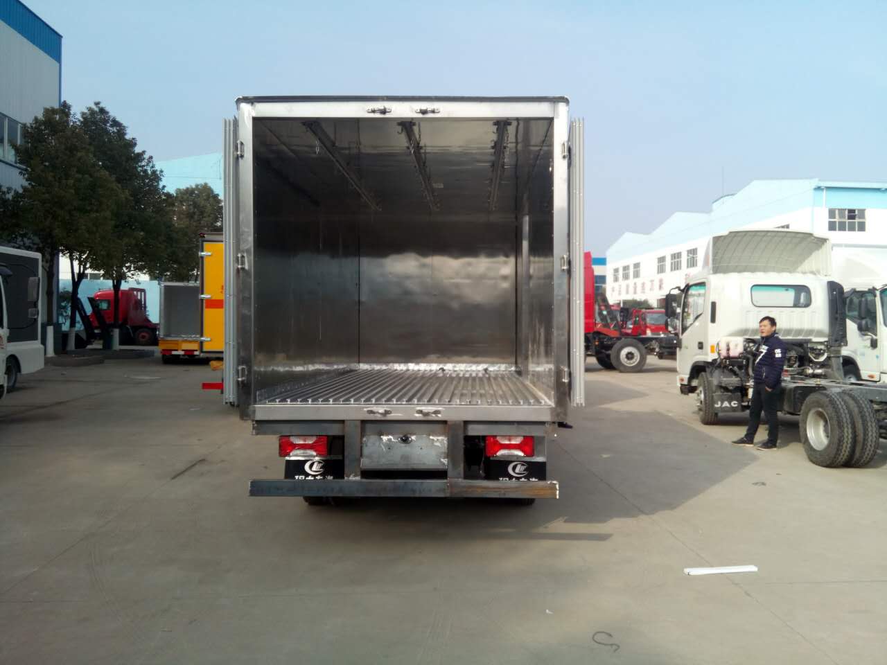 保溫箱體配置:箱體尺寸長××高為:4050×1930×190014.8立方,廂體厚度為8厘米。內(nèi)外板材采用冷藏車專用玻璃鋼,(可反射陽光),中間夾層為聚氨酯發(fā)泡隔熱材料,(防火阻燃隔熱)千噸大型壓力機(jī)壓制而成,配件箱體全為不銹鋼鎖件,不銹鋼包角,不銹鋼門框,帶有頂燈及防撞塊。廂體內(nèi)部裝有照明燈和誤操作報警器,加裝鋁合金材質(zhì)導(dǎo)風(fēng)槽,導(dǎo)風(fēng)槽可是廂體底部均勻的吹到冷風(fēng)。我廠的冷藏保溫車保溫材料選用進(jìn)口級別XPS,吸水率≤1,導(dǎo)熱系數(shù)≤0.028W/mk,抗壓≥150Kpa,密度3045kg/m3,使用國際上最為先進(jìn)的第五代全封閉聚氨酯板塊粘接結(jié)構(gòu),廂板表面材料有玻璃鋼、不銹鋼、鋁合金、彩鋼板等材料可供選擇,廂體成型后具有質(zhì)量輕,保溫系數(shù)高,抗沖擊力強(qiáng),無滲漏等優(yōu)點,對大氣、水和酸、堿、鹽等介質(zhì)具有良好的耐腐蝕性和抗老化性。通過優(yōu)化設(shè)計,降低了整車質(zhì)心,增大了有效容積。經(jīng)測試,整車綜合節(jié)能率,使用壽命,比一般冷藏保溫廂高12倍。