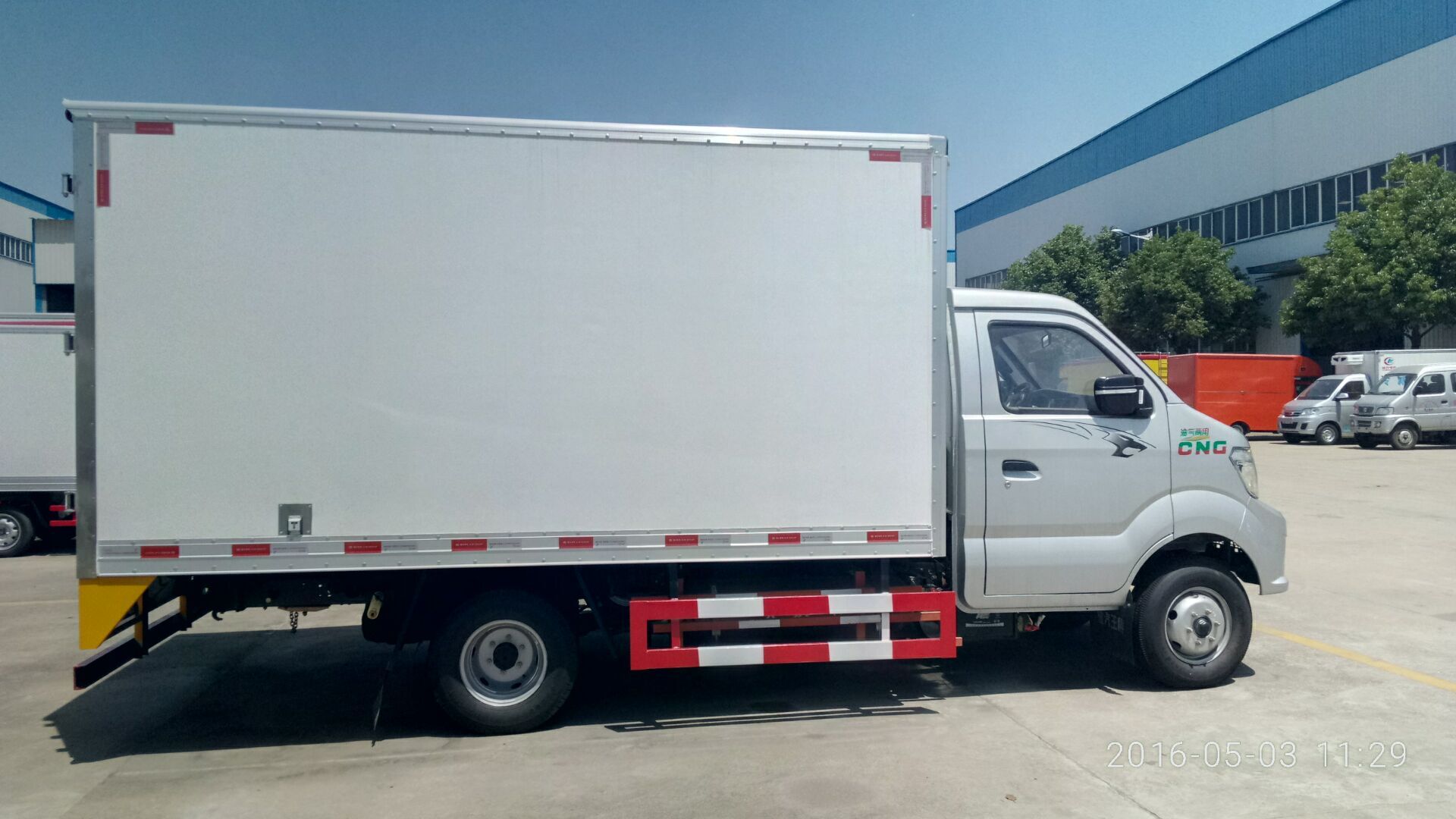 整車說明:選裝黑色保險杠;選裝貨箱外觀;頂部封閉,不可開啟;該車型的用途是貨品的冷藏運輸。