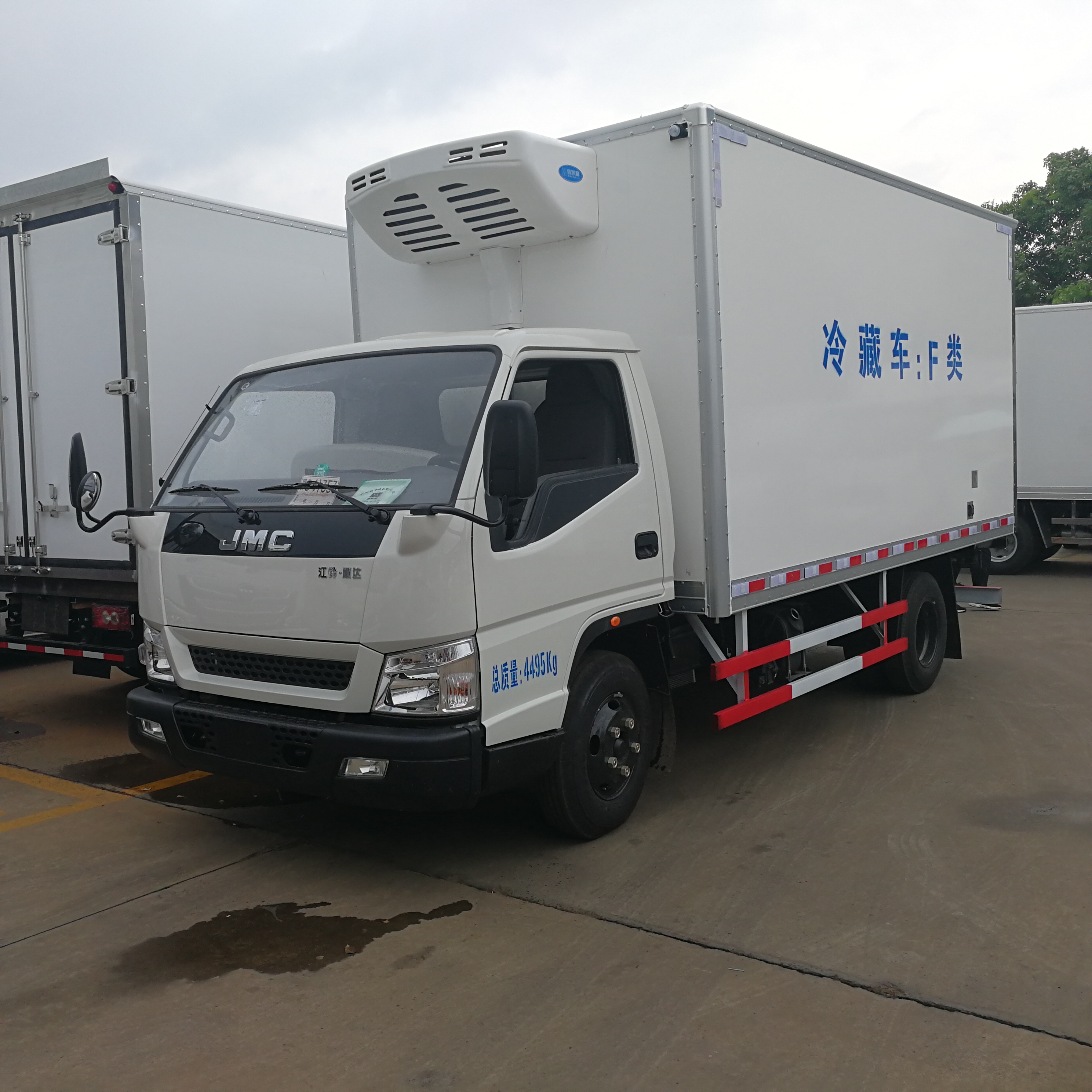 江鈴順達(dá)寬體國五4米2冷藏車標(biāo)準(zhǔn)配置:箱體尺寸長×寬×高為:4050×2050×2010,16.7立方,廂體厚度為8厘米。內(nèi)外板材采用冷藏車專用玻璃鋼,(可反射陽光),中間夾層為聚氨酯發(fā)泡隔熱材料,(防火阻燃隔熱)大型千噸壓力機(jī)壓制而成,配置箱體全為不銹鋼鎖件,不銹鋼包角,不銹鋼門框,帶有頂燈及防撞塊。我廠的冷藏保溫車保溫材料選用進(jìn)口級別XPS,吸水率≤1,導(dǎo)熱系數(shù)≤0.028W/mk,抗壓≥150Kpa,密度30~45kg/m3,使用國際上最為先進(jìn)的第五代全封閉聚氨酯板塊粘接結(jié)構(gòu),廂板表面材料有玻璃鋼、不銹鋼、鋁合金、彩鋼板等材料可供選擇,廂體成型后具有質(zhì)量輕,保溫系數(shù)高,抗沖擊力強(qiáng),無滲漏等優(yōu)點,對大氣、水和酸、堿、鹽等介質(zhì)具有良好的耐腐蝕性和抗老化性 。通過優(yōu)化設(shè)計,降低了整車質(zhì)心,增大了有效容積。經(jīng)測試,整車綜合節(jié)能率,使用壽命,比一般冷藏保溫廂高1~2倍。 冷藏機(jī)組:采用國產(chǎn)冷凍制冷機(jī)組,冷藏效果好,降溫快,最低溫度可達(dá)零下15度,可按需求自由調(diào)
