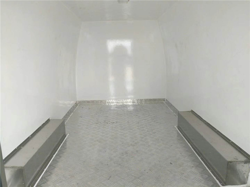 箱體內(nèi)尺寸為2400x1450x12004.2。內(nèi)膽圓弧式廂體,內(nèi)外板材采用冷藏車專用玻璃鋼,(可反射陽光),中間夾層為聚氨酯發(fā)泡隔熱材料,(防火阻燃隔熱)大型千噸壓力機壓制而成,配置箱體全為不銹鋼鎖件,不銹鋼包角,不銹鋼門框,帶有頂燈及防撞塊。我廠的冷藏保溫車保溫材料選用進口級別XPS,吸水率≤1,導熱系數(shù)≤0.028W/mk,抗壓≥150Kpa,密度3045kg/m3,使用國際上最為先進的第五代全封閉聚氨酯板塊粘接結(jié)構(gòu),廂板表面材料有玻璃鋼、不銹鋼、鋁合金、彩鋼板等材料可供選擇,廂體成型后具有質(zhì)量輕,保溫系數(shù)高,抗沖擊力強,無滲漏等優(yōu)點,對大氣、水和酸、堿、鹽等介質(zhì)具有良好的耐腐蝕性和抗老化性 。通過優(yōu)化設(shè)計,降低了整車質(zhì)心,增大了有效容積