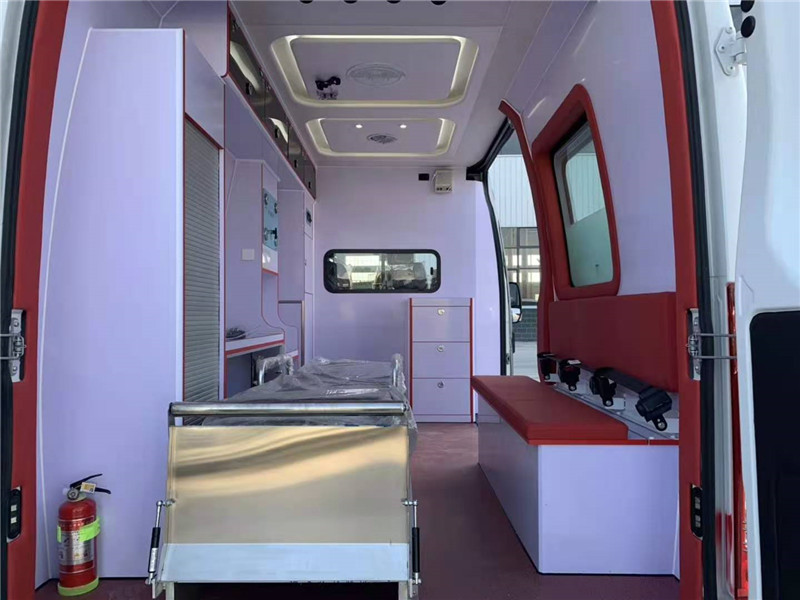 車底、側(cè)壁等加強(qiáng)預(yù)埋件1,全車隔熱、隔音材料1,車內(nèi)地板采用進(jìn)口耐酸、堿、防火、防滑、防靜電地板1,駕駛室與醫(yī)療艙安裝異型分隔墻(含一體式鋼化玻璃推拉窗)1,前后對講機(jī)1,車頂排風(fēng)扇1,醫(yī)療艙隔墻后折疊醫(yī)生看護(hù)座椅1,表面覆紅色或藍(lán)色皮革1,醫(yī)療艙左側(cè)藥品、器械儲物柜1,醫(yī)療艙左側(cè)吊柜1,隔墻后急救箱儲存柜(根據(jù)艙內(nèi)長度選擇)1,醫(yī)療艙左側(cè)卷簾門儲物柜1,左側(cè)安裝10L鋁制氧氣瓶及方便拆卸固定架2,氧氣流量及壓力閥2,氧氣終端2,終端濕化瓶1,醫(yī)療艙內(nèi)右側(cè)安裝有安全帶的三人PVC材料柜式床,座墊及靠背表面用皮革包覆1,醫(yī)療艙內(nèi)頂部滑動輸液瓶架1,頂部黃色安全扶手1,醫(yī)療艙安裝(國產(chǎn))自動上車擔(dān)架1,上車擔(dān)架不銹鋼板導(dǎo)板1,后門左內(nèi)側(cè)安裝鏟式擔(dān)架(或在柜式床內(nèi)存放)1,不銹鋼污物桶1,醫(yī)療艙中門、尾門防撞頭靠1,滅火器,醫(yī)療艙左側(cè)黑色玻璃膜1,右側(cè)2/3磨砂膜1,車身腰部紅色/藍(lán)色強(qiáng)效反光帶。