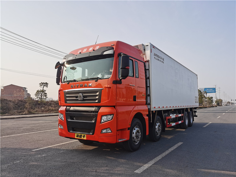 汕德卡自動(dòng)擋480馬力前四后八9米6冷藏車是一款高端大氣重載型豪華版冷藏車。