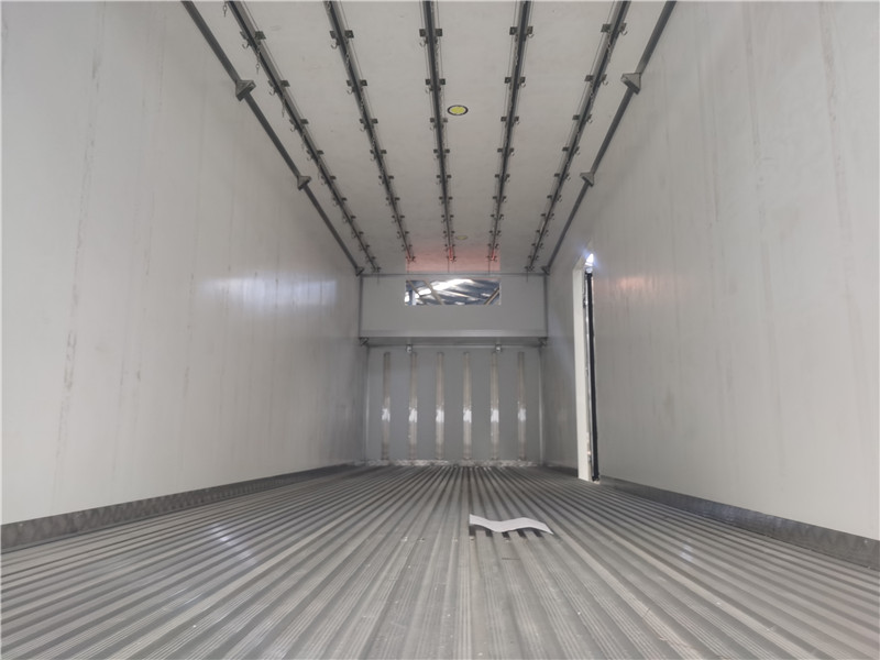 冷藏箱體內(nèi)部選裝肉鉤導軌,地板通風槽,卡槽,擋風布,溫濕度記錄儀等專用配件。制冷設備可根據(jù)運輸?shù)呢浳镞x裝進口開利850,冷王T880獨立制冷機組,選裝鄭州凱雪960,1090超薄非獨立冷機。