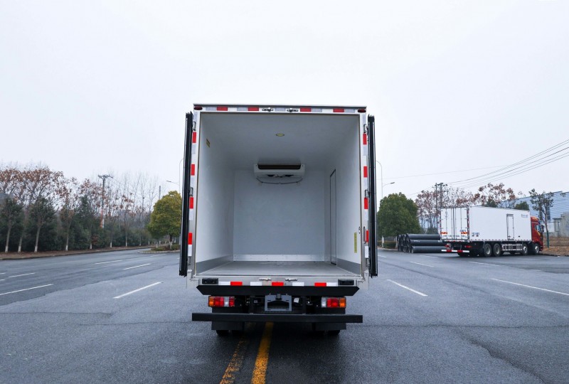 五十鈴M100藍(lán)牌4米2冷藏車(chē)專(zhuān)用配置:冷藏箱體配置:《斷橋隔溫工藝、整體結(jié)構(gòu)框架》;內(nèi)外面料為2mm新款玻璃鋼;側(cè)板+頂板:龍骨斷橋?yàn)樗赡緩?fù)合板;木質(zhì)隔溫結(jié)構(gòu);夾心為聚苯乙烯保溫材料;全密封雙組合聚氨酯膠粘連;廂體厚度為8cm;鍍鋅包角;最新款鋁合金包邊型材;型材局部厚度為4mm(鋼制鉚釘加固);廂體內(nèi)部采用1個(gè)LED照明燈及廂體示寬燈;后門(mén)框?yàn)?mm厚不銹鋼材質(zhì);門(mén)框密封條為三元乙丙橡膠材質(zhì);加厚型不銹鋼合頁(yè)及鎖件;副梁為Q700車(chē)用大梁鋼;15mm厚大梁墊皮;加裝防撞膠塊;不銹鋼門(mén)鎖件,配后雙開(kāi)門(mén)。底板為塑鋼花紋板,單側(cè)門(mén)。