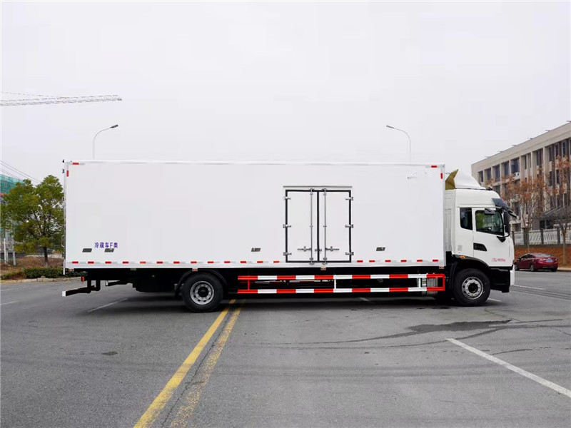 東風(fēng)天錦KR國六單橋高頂雙臥9米6冷藏車上裝配置:冷藏箱體尺寸:9650*2440*2450(mm),冷藏箱板是由鍍鋅管骨架加上環(huán)保防水木板一次成型,中間8CM新型環(huán)保輕量化保溫材料,加厚3.0玻璃鋼,高強(qiáng)度粘合劑、熱壓成型,外框采用304不銹鋼、加厚鋁型材包邊、27不銹鋼大門鎖、配件,箱體拼接出來不打膠無縫隙,降溫速度快、散溫慢、保溫效果好,門帶斜邊,副梁是510大梁鋼一次性折成,用壓板鎖緊,側(cè)護(hù)網(wǎng)和后保險(xiǎn)杠一次性成型。