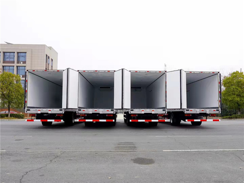 冷藏車廂生產(chǎn)線是國際最先進(jìn)18米大型復(fù)合板材生產(chǎn)線,壓板臺(tái)面生產(chǎn)前機(jī)器自動(dòng)吸塵干凈,保證壓板機(jī)一次壓制成型,其生產(chǎn)設(shè)備及技術(shù)均領(lǐng)先同行業(yè)標(biāo)準(zhǔn),箱體外形美觀,整體質(zhì)量輕,強(qiáng)度高,無滲漏特點(diǎn),箱體堅(jiān)固耐用,保溫效果高,采用國際通用三明治工藝+我廠專利木質(zhì)工藝(龍骨連接鑲?cè)氕h(huán)保防水木材起保溫耐腐蝕作用)、斷橋隔熱技術(shù)!保溫效果達(dá)到國家A級(jí)標(biāo)準(zhǔn)。冷藏箱體內(nèi)部選裝地板通風(fēng)槽,溫濕度記錄儀,肉鉤導(dǎo)軌等專用配置。制冷設(shè)備選裝國產(chǎn)或進(jìn)口冷凍制冷機(jī)組,最低溫度可達(dá)-18度,可根據(jù)運(yùn)輸貨物的要求進(jìn)行調(diào)節(jié)。