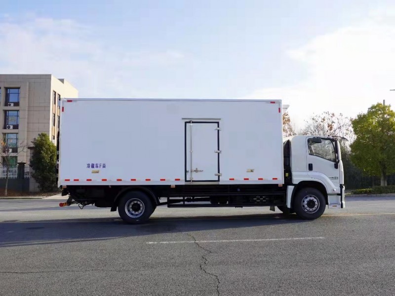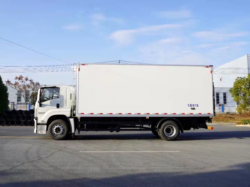 超級(jí)中卡五十鈴巨咖國(guó)六6米8冷藏車上裝配置:冷藏箱體內(nèi)尺寸:6800*2410*2500(mm),冷藏保溫箱板是由鍍鋅管骨架加上環(huán)保防水木板一次成型,中間8CM新型環(huán)保輕量化保溫材料,加厚3.0玻璃鋼,高強(qiáng)度粘合劑、熱壓成型,外框采用304不銹鋼、加厚鋁型材包邊、27不銹鋼大門鎖、配件,箱體拼接出來(lái)不打膠無(wú)縫隙,降溫速度快、散溫慢、保溫效果好,門帶斜邊,副梁是510大梁鋼一次性折成,用壓板鎖緊,側(cè)護(hù)網(wǎng)和后保險(xiǎn)杠一次性成型。