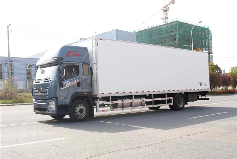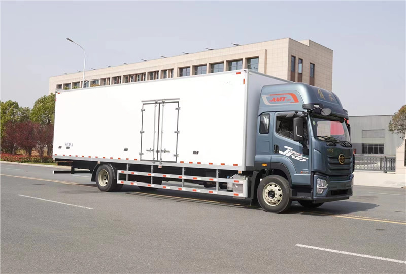解放JK6大單橋高性價比的黃牌9米6冷藏車車輛配置: 解放JK6高頂雙臥駕駛室,搭載錫柴260馬力(CA6DLD-26E6)發(fā)動機,8檔變速箱(可選自動擋變速箱),低底盤,視頻包2.0(10寸基本屏+四方位影像),雨眉,發(fā)光鷹標,液晶儀表,多功能方向盤,格拉默通風座椅,帶中間座椅,中控鎖,巡航系統(tǒng),板簧3/7+3,帶前橋橫向穩(wěn)定桿,600L鋁油箱,ETV閥,鋁合金儲氣筒,120Ah蓄電池,U型后處理器,長保養(yǎng)粗濾,機箱橋長換油,限速89KM/H,ABS,軸距 :7100mm,可調節(jié)大燈,剎車自動調整臂。