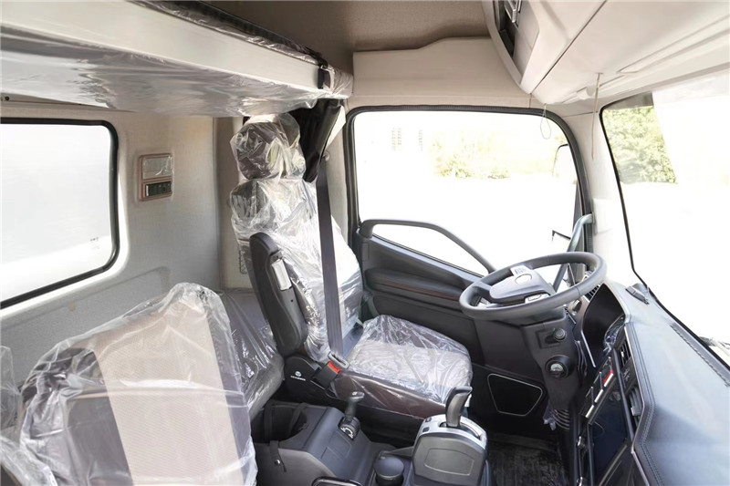駕駛室四幅式多功能方向盤兩側的多功能按鍵具備定速巡航、藍牙電話接聽等功能。儀表盤采用了高分辨率液晶屏,方便駕駛員時刻觀察車門開關、油耗、氣壓等車輛基本信息。提升駕乘舒適性的同時,頂置儲物空間也得到了優(yōu)化,隔斷式設計可以用來存放換洗衣物。遮陽板采用電動提拉設計,卡友行車時可以根據室外光線變化隨意調整,在駐車休息時還能保證私密性。標配容量600L鋁合金油箱,綜合高速工況、車貨總質量18噸的情況下,百公里平均油耗22L,整體續(xù)航能力超過2500公里。