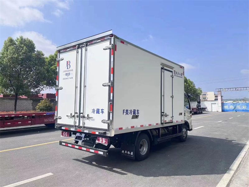 江淮駿鈴藍(lán)牌天然氣冷藏車箱體內(nèi)部選裝地板通風(fēng)槽,頂部肉鉤導(dǎo)軌,攔貨槽等專用設(shè)備,安裝-15度制冷機組,可選裝國產(chǎn)凱利,颶豐,華泰,凱雪等品牌冷機,進口冷機可選裝開利,冷王,韓亞制冷機組,最低溫度可達(dá)-15度,可根據(jù)運輸貨物的要求進行溫度調(diào)節(jié)。