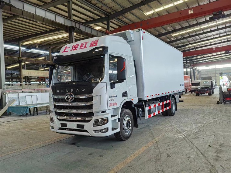 上汽紅巖杰豹6米8冷藏車上裝配置:廂體內(nèi)尺寸:6800×2430×2450mm(40m3),外面料為新款啞光加厚玻璃鋼;夾心為高密度保溫材料;全密封雙組合聚氨酯膠粘連/榫卯合廂;整體框架式骨架;廂體保溫板厚度為8cm;鍍鋅包角;鋁合金包邊(鋼制密封鉚釘加固);廂體內(nèi)部采用LED照明燈及廂體示寬燈;后門框為加厚不銹鋼門飾;密封條為三元乙丙橡膠黑色密封條(新款5葉片帶鋁合金壓條)后門+側(cè)門為全包圍密封條;側(cè)門框為絕熱PVC+加厚不銹鋼材質(zhì);廂體內(nèi)前端加裝2個排水孔;2個防撞膠塊;1個門把手;副梁整體為輕量化高強鋼;壓板+U型栓+橡膠鋼絲墊皮+護網(wǎng)+擋泥板+3M反光膠板為標準件;其它標配。