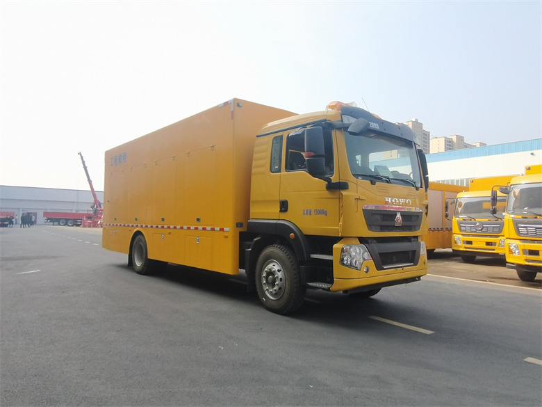 重汽豪沃3000方排澇車(chē)-工程救險(xiǎn)車(chē)標(biāo)準(zhǔn)配置:整車(chē)采用優(yōu)質(zhì)碳鋼方管骨架,1.5mm 厚蒙皮,先進(jìn)的噴涂技術(shù),車(chē)廂整體防銹、防腐使用年限更長(zhǎng),廂體外部鋼材為優(yōu)質(zhì)冷軋鋼板,內(nèi)襯優(yōu)質(zhì)冷軋鋼板折彎骨架,工藝先進(jìn),強(qiáng)度牢固。廂體為全密封結(jié)構(gòu),具備運(yùn)輸、防雨、防腐、防火、防銹要求。車(chē)廂尾部為對(duì)開(kāi)門(mén)。發(fā)電機(jī)組進(jìn)排風(fēng)消聲處理,消聲器做降噪處理。車(chē)輛安裝四只液壓支撐腿,可在駐車(chē)狀態(tài)均分車(chē)輛靜壓,保護(hù)車(chē)輪及彈簧鋼板。選用進(jìn)口優(yōu)質(zhì)多路閥組,液壓支撐缸采用進(jìn)口密封件,單支腿靜載荷 8 噸,加裝雙向液壓鎖。底盤(pán)發(fā)動(dòng)機(jī)全功率取力液壓動(dòng)力源,驅(qū)動(dòng)排水機(jī)器人、液壓油箱、散熱器、水帶液壓卷盤(pán)、液壓油管卷盤(pán)等液壓系統(tǒng)工作。定制分動(dòng)箱,進(jìn)口高壓液壓油泵,高效能轉(zhuǎn)換,平穩(wěn)無(wú)極調(diào)速,為車(chē)輛節(jié)約空間,整車(chē)液壓系統(tǒng)布局合理。
