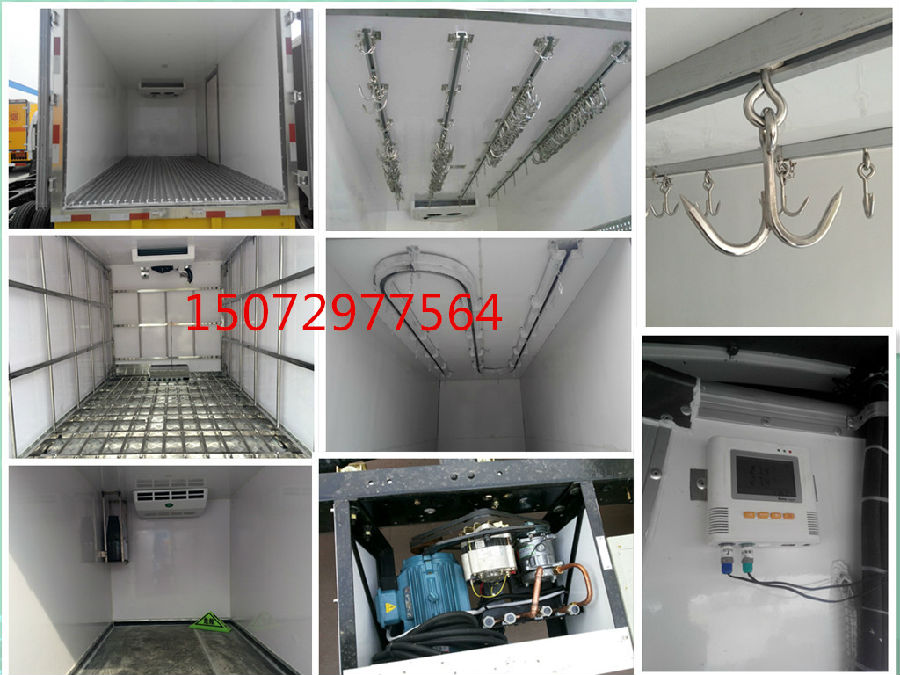 冷藏車箱體內(nèi)部可根據(jù)客戶實際需求加裝通風槽,肉鉤導軌,側(cè)門,溫濕度記錄儀等,制冷機組有保鮮機組和制冷機組,水果蔬菜等保溫類選裝保鮮機組,肉類冷凍類選裝冷凍機組。