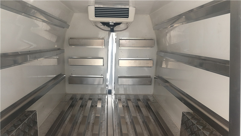 金杯快運國六藥品面包冷藏車標準配置:內(nèi)膽圓弧式廂體。廂體內(nèi)尺寸2400x1380X1200(mm),內(nèi)板材采用冷藏車專用玻璃鋼,(可反射陽光),中間夾層為聚氨酯保溫板,配置箱體全為不銹鋼鎖件,不銹鋼包角,不銹鋼門框,帶有頂燈及防撞塊。廂板表面材料有玻璃鋼、不銹鋼、鋁合金、彩鋼板等材料可供選擇,廂體成型后具有質(zhì)量輕,保溫系數(shù)高,抗沖擊力強,無滲漏等優(yōu)點,對大氣、水和酸、堿、鹽等介質(zhì)具有良好的耐腐蝕性和抗老化性 。通過優(yōu)化設(shè)計,降低了整車質(zhì)心,增大了有效容積。經(jīng)測試,整車綜合節(jié)能率,使用壽命,比一般冷藏保溫廂高1~2倍。廂體加裝5面通風(fēng)槽。選裝溫濕度記錄儀,豬牛肉肉鉤導(dǎo)軌等設(shè)備,制冷設(shè)備可選裝國產(chǎn)或進口制冷機組,選裝保鮮-5度,冷凍-15度制冷機組,上藍牌,C證可開,可進市區(qū)。