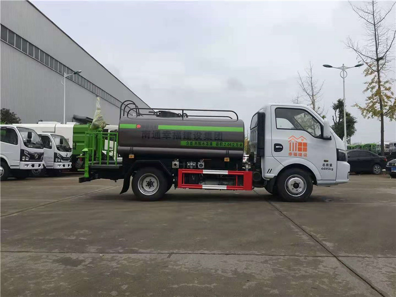 東風途逸藍牌灑水車標準配置:灑水車罐體有效容積2立方,罐體鋼板為3mm碳鋼Q235材質(zhì)專用容積板一次成型,罐內(nèi)隔板具有防波作用,以減輕汽車行駛時罐體液體沖擊;配大功率專用灑水泵,泵可自吸自排;整車前沖、后灑、側(cè)噴、后平臺帶綠化灑水炮,灑水炮可全方位旋轉(zhuǎn),可連續(xù)調(diào)成直沖狀、大雨、小雨、毛毛雨;前封頭帶水位計,后平臺主管路帶1寸澆花接口,后爬梯,帶1個消防接頭,帶1個自流閥,1個過濾裝置。