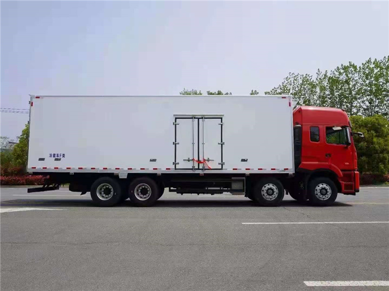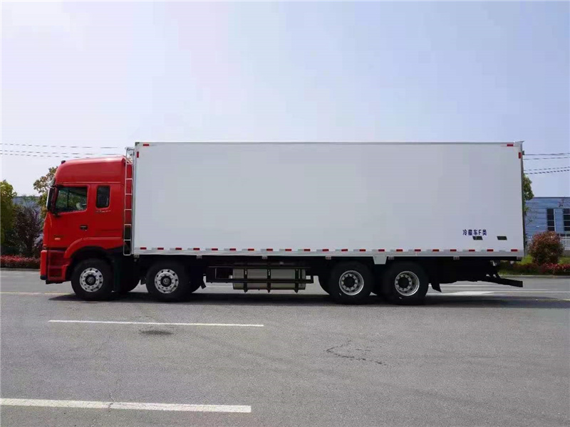 我公司冷藏車生產(chǎn)線是國際最先進(jìn)18米大型復(fù)合板材生產(chǎn)線,壓板臺面生產(chǎn)前機器自動吸塵干凈,保證壓板機一次壓制成型,其生產(chǎn)設(shè)備及技術(shù)均領(lǐng)先同行業(yè)標(biāo)準(zhǔn),箱體外形美觀,整體質(zhì)量輕,強度高,無滲漏特點,箱體堅固耐用,保溫效果高,保溫效果達(dá)到國家A級標(biāo)準(zhǔn)。冷藏箱體內(nèi)部可選裝地板加厚矩形通風(fēng)槽,選裝肉鉤導(dǎo)軌,溫濕度記錄儀,對開側(cè)門,通風(fēng)布,制冷設(shè)備可選裝凱雪超薄1090制冷機組,進(jìn)口開利或冷王獨立制冷機組。