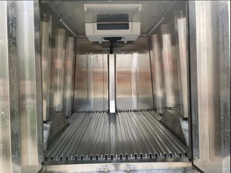 五面通風(fēng)導(dǎo)流槽,確保貨物底部,側(cè)部不與廂體完全接觸,保證整個 廂體(尤其底部)冷氣循環(huán),國產(chǎn)冷機機組(頂置) 標配 制冷機組只有單冷功能,最低溫度可達-18℃;在配 備加熱系統(tǒng)功能條件下,冷藏箱溫度可控制在