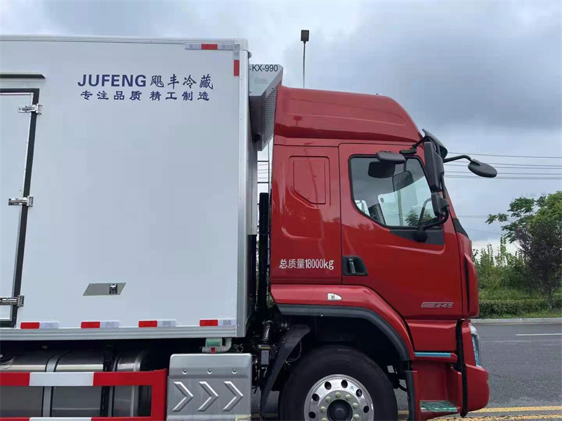 柳汽乘龍H5高頂雙臥6米8冷藏車上裝配置:《斷橋隔溫工藝、整體結(jié)構(gòu)框架》;內(nèi)外面料為3mm新款啞光玻璃鋼;側(cè)板+頂板:龍骨斷橋為松木復(fù)合板;木質(zhì)隔溫結(jié)構(gòu);全密封雙組合聚氨酯膠粘連;廂體厚度為8cm;鍍鋅包角;最新款鋁合金包邊型材;型材局部厚度為4mm(鋼制鉚釘加固);廂體內(nèi)部采用2個LED照明燈及廂體示寬燈;后門框為2mm厚不銹鋼材質(zhì);門框密封條為三元乙丙橡膠材質(zhì);加厚型不銹鋼合頁及鎖件;副梁為Q710車用大梁鋼;15mm厚大梁墊皮;加裝防撞膠塊;3M反光膠板;箱體底板為玻璃鋼,不銹鋼門鎖件,加裝加厚通風(fēng)槽,30公分鋁合金新型圍裙,箱體內(nèi)部選裝肉鉤導(dǎo)軌,溫濕度記錄儀等專用配置。制冷設(shè)備選裝國產(chǎn)或進(jìn)口制冷機(jī)組。最低溫度可達(dá)-18度,可根據(jù)需求進(jìn)行調(diào)節(jié)。