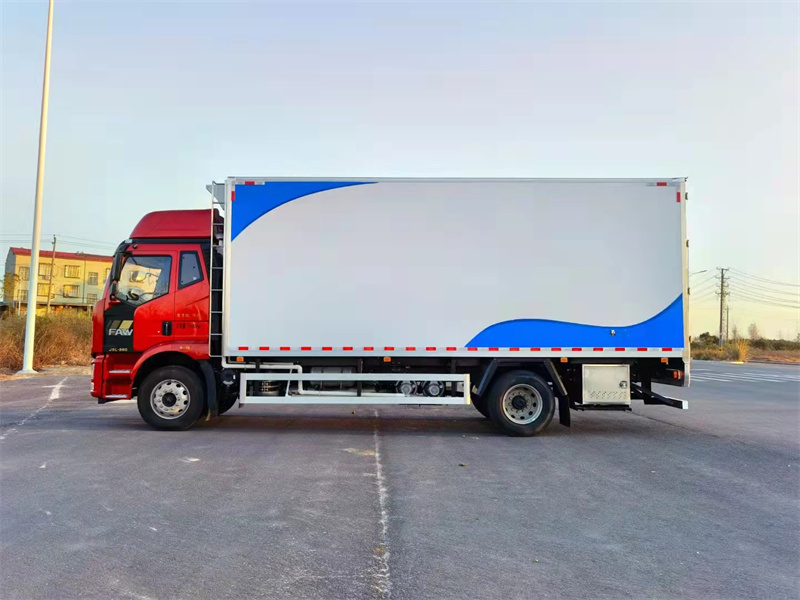 解放J6L國六6米8鮮活魚水產(chǎn)品冷鏈運輸車上裝配置:冷藏箱體配置:《斷橋隔溫工藝、整體結(jié)構(gòu)框架》;內(nèi)外面料為3mm耐海水腐蝕玻璃鋼;側(cè)板+頂板:龍骨斷橋為鐵質(zhì)框架加松木復(fù)合板;木質(zhì)隔溫結(jié)構(gòu);夾心為聚苯乙烯保溫材料;全密封雙組合聚氨酯膠粘連;廂體厚度為8cm;鍍鋅包角;最新款鋁合金包邊型材;型材局部厚度為4mm(采用玻璃膠粘結(jié)減少打孔增加箱體耐腐蝕性);廂體內(nèi)部采用2個LED照明燈及廂體示寬燈;后門框為2mm厚304不銹鋼材質(zhì);門框密封條為三元乙丙橡膠材質(zhì);加厚型304不銹鋼合頁及鎖件;副梁為Q700車用大梁鋼(副梁采用噴粉工藝,金屬表面物理化拋丸處理;結(jié)晶體皮處理;靜電粉體涂裝;熱固化200-220℃高溫烘烤;常溫冷卻。耐酸耐堿耐腐蝕);15mm厚大梁墊皮;加裝防撞膠塊;不銹鋼門鎖件,配后雙開門。安裝國產(chǎn)非獨立制冷機組,最低溫度可達(dá)-15度,可根據(jù)運輸需求進(jìn)行調(diào)節(jié)。